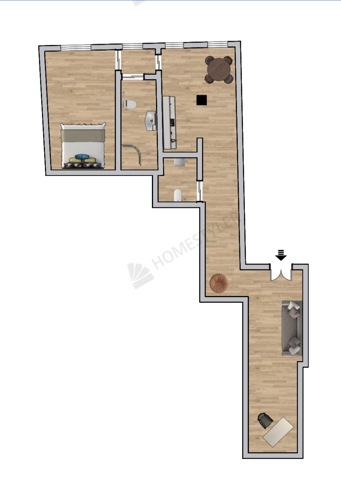 Recentemente ristrutturato è composto da un ingresso con zona giorno, una cucina abitabile, una camera da letto, un bagno completo e uno di servizio, viene venduto completo di tutti gli arredi.