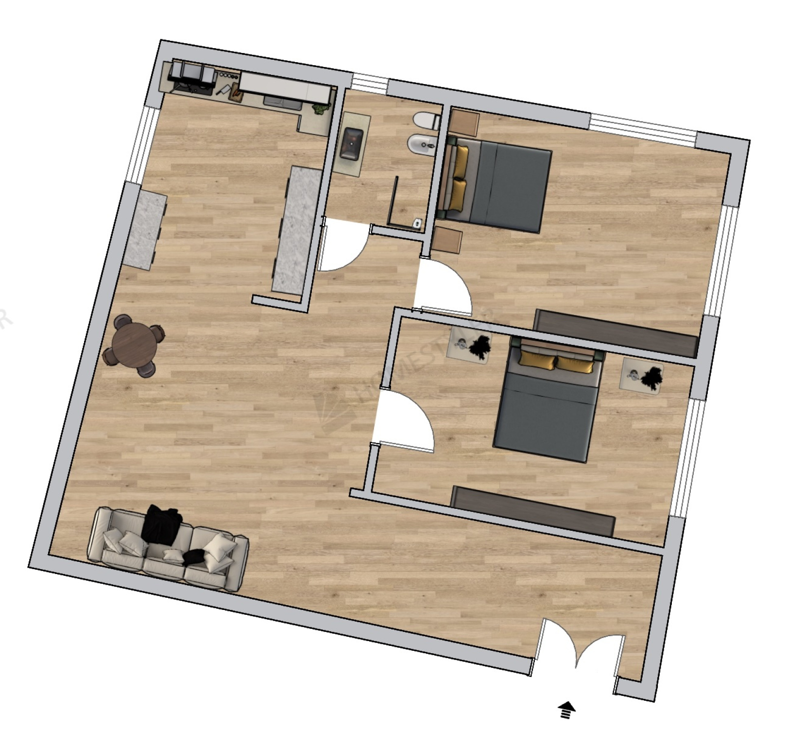 Recentemente ristrutturato valorizzando gli elementi architettonici d’epoca, è composto da un soggiorno con cucina arredata, due camere da letto matrimoniali, e un bagno con doccia, per un totale di circa 80 mq con tutti i comfort moderni.