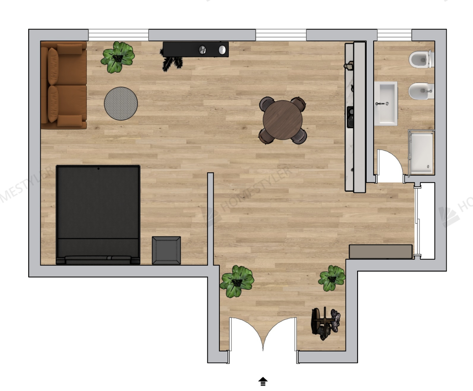 Quinto al mare, affittiamo, con contratto transitorio, un delizioso open space con zona notte, soggiorno e cucina a vista, cabina armadi, un bagno e dispensa.